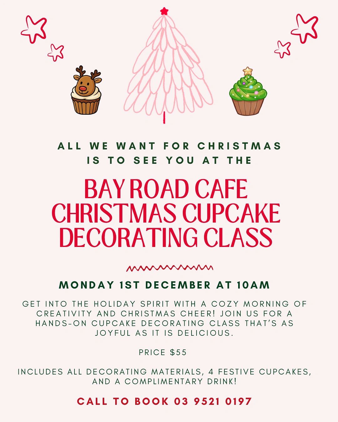 Guided by our friendly cafe owner Janine, you'll learn step by step techniques to create four beautifully decorated festive cupcakes - think twinkling Christmas trees, snowy wreaths and sparkling reindeer magic!
